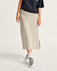 With a flattering bias cut panel and side slit that allows for easy movement, the Diana Column Checkerboard Skirt offers an elevated take on a retro style with a satiny charmeuse fabric featuring a subtle woven check print.