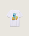 The Little Kids Mealin and Dealin T-Shirt brings playful energy to a classic silhouette. With a bold back graphic inspired by diner nostalgia, this easy-wearing tee delivers all-day comfort with a side of Vans attitude—perfect for little ones who like their style served fresh.