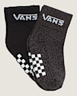 Soft infant crew socks with knit checkerboard and bold Vans logo in a 2-pack.