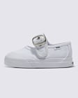 Tapping into retro nostalgia and a playful interpretation of femininity, the Vans Mary Jane takes this timeless silhouette and cranks it up a notch. Pairing a simple buckle and strap with a rubber toe cap, all-white aesthetic, and our signature rubber waffle outsole, the Toddlers Mary Jane delivers the perfect blend of casual and classy, ideal for . . . well, just about anything your little one has in mind.