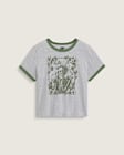 Ringer tee with throwback graphic and contrast trim.