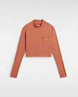 - The Vans Mini Mock Neck Long Sleeve T-Shirt features the Vans logo on the left chest and has a cropped fit.