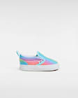 - A Slip-On Made Specifically for Little Feet The Toddlers Slip-On V remakes our Classic Slip-On with little ones in mind. By adding side hook-and-loop closures and heel pulls to this vibrant style, an everyday essential is given a better fit for small feet, and has even easier on-and-off access, too. • Iconic Slip-On shoe made for toddlers • Side hook-and-loop closures and heel pull tabs • Low profile textile uppers with allover rainbow print • Supportive padded collars • Elastic side accents • Signature rubber waffle outsoles