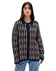 - Keep warm while keeping it cool and casual in the Alta Chunky Knit Cardigan. This cardigan features an oversized fit, full button front, ribbed collar, and allover stripe inspired pattern for an added Off-The-Wall touch to this classic wardrobe staple. • 100% Cotton fabric • Oversized chunky sweater knit • Ribbed collar • Button front