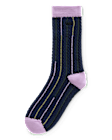 - The Alta Crew Sock is a chunky crew sock that features jacquard stripe pattern allover and embroidered Vans logo. • 69% Cotton, 27% Polyester, 3% Elastane, 1% Other Fiber fabric • Chunky knit crew sock • Jacquard artwork • Embroidered Vans® logo • 18,4 cm tall