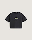 - Boxy, cropped fit