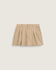 Pleated chino mini with uniform-inspired style.