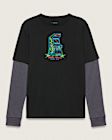 The Kids Always Twofer T-Shirt is a long sleeve crewneck tee made from a heavier weight cotton and features a video game graphic.