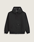 This full-zip hoodie combines a sturdy cotton canvas exterior with cozy padding for warmth and protection. The relaxed fit and kangaroo pocket offer casual comfort, while ribbed cuffs and hem lock in heat. A classic Vans logo patch adds an iconic touch to this versatile layer.
