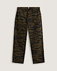 Built to last, the Skate Loose Cargo Pants offer a loose fit so you can skate freely, custom tiger camo cargo pant with a vintage wash adds timeless appeal, and ripstop fabrication with a tighter weave of fabric designed to make it rip and tear resistant. Reinforced knees also make it safe to go hard, while plenty of cargo pockets make it easy to stash your stuff while you skate. Embroidery adds premium details while our skateboarding label package make cargos unmistakably Vans.