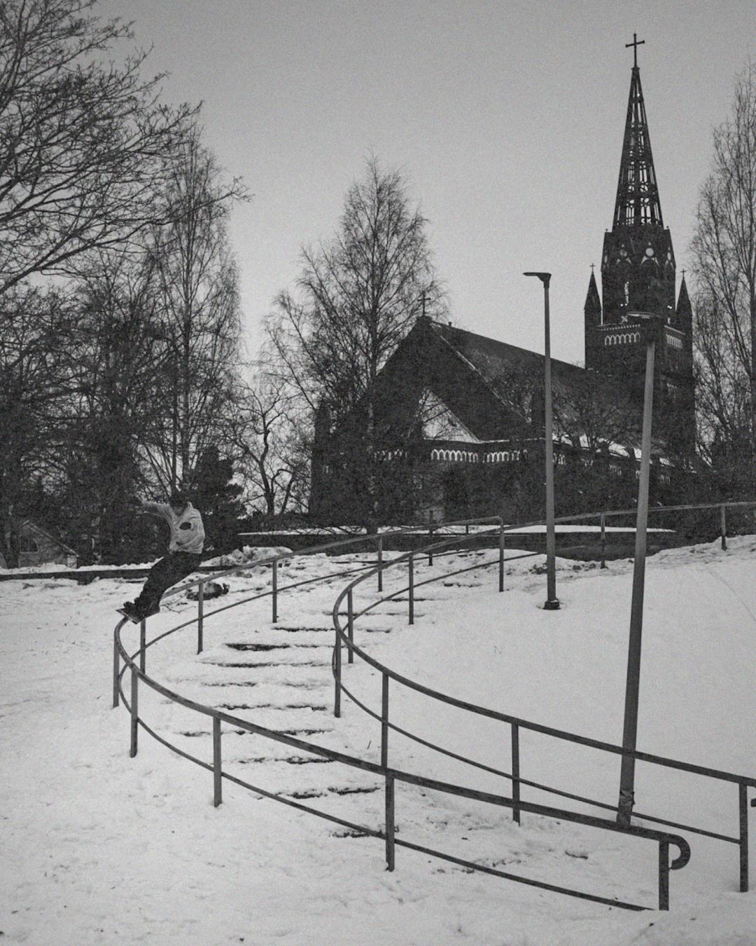 Según. Obviamente, lo más importante es que haya buena nieve. Y luego los sitios. Cualquier ciudad con buena nieve es el escenario ideal. Que haga frío y no haya prisa. Últimamente, mi sitio favorito ha sido Oslo. Puede ser duro con la lluvia, pero hace unos años pasé un mes allí para Transparent, un vídeo de Vans, y lo disfrutamos muchísimo. Un mes entero con temperaturas mínimas de -10 °C, nieve polvo y algunas de las mejores condiciones que he tenido para grabar snow, además de un montón de sitios increíbles. Helsinki también es todo un clásico.