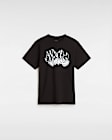 - La camiseta Burnout de Vans para niños es un modelo de manga corta y cuello redondo, decorado con el logotipo de la marca, acompañado de un gráfico en forma de llamas en la parte delantera.