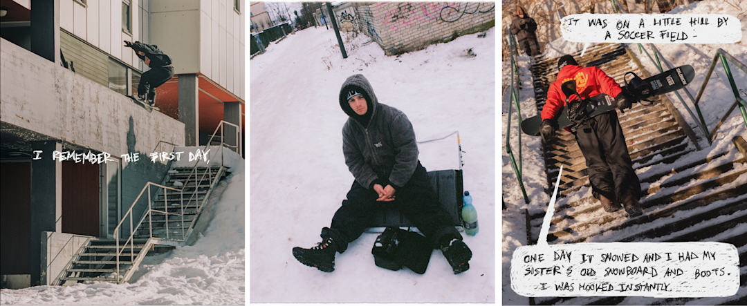 Me acuerdo del primer día: en una pequeña colina junto a un campo de fútbol. Había nevado y llevaba la vieja tabla y las botas de mi hermana. Fue muy divertido. A partir de ahí, cerca de donde crecí había una pequeña montaña con unos cuatro telesquís. Mis amigos y yo íbamos allí después de clase y en vacaciones. Ahí fue donde empezó todo de verdad para mí.