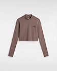 - Le t-shirt à manches longues Mini Mock Neck de Vans arbore le logo Vans sur le côté gauche de la poitrine et présente une coupe courte.